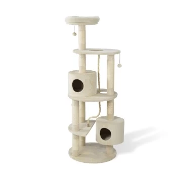- Kompakter und funktionaler Kratzbaum mit Bereichen zum Klettern, Spielen und Ausruhen