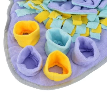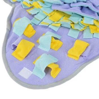 Dein Liebling findet die Leckerlis mithilfe der Nase, Schnauze und/oder den Pfoten. Kann auch für die tägliche Futtergabe verwendet werden, sodass es auch das Schlingen verhindern kann. Inklusive einer Gebrauchsanweisung mit Tipps und Tricks für das optimale Training. Auf der Unterseite des Teppichs befindet sich eine Anti-Rutsch-Beschichtung, die ein ungewolltes Verschieben des Liegeplatzes verhindert.