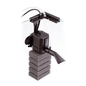 Die Installation des Geräts ist dank des Griffs mit starken Saugnäpfen und einem funktionellen Aufhänger, mit dem der Filter am Rand des Aquarienglases befestigt werden kann, sehr einfach.