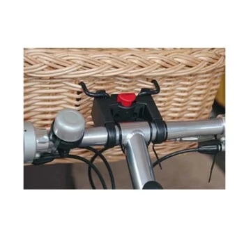 Durch Druck auf die rote Taste kann das Zubehör bequem wieder vom Rad gelöst werden. Auch bei schweren Taschen sitzt der Adapter durch die patentierte Seilabspannung absolut verdrehsicher und fest am Lenker. Der Adapter läßt sich an die unterschiedlichen Bedingungen am Rad anpassen. Verschiedene Distanzstücke, Montagesockel und Schellengrößen, ermöglichen die Montage an fast allen Rädern.