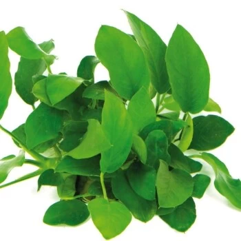 Anubias barteri spec. nana – das Zwergspeerblatt ist eine sehr langsam wachsende Pflanze, die idealerweise auf Steinen und Wurzeln befestigt wächst.