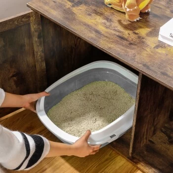– Doppeltüren: Ermöglichen einen einfachen Zugang zur Katzentoilette, um die Streu zu schaufeln.