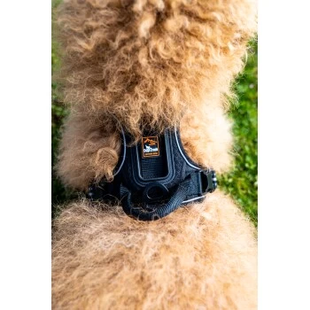 Über den Griff am Rücken lässt sich dein Hund sicher kontrollieren und die integrierten Duraflex-Verschlüsse garantieren Halt und Stabilität.