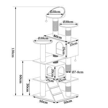 - MAßE & FARBEN. Dieses hochwertige Katzenzubehör verfügt über die Maße 50x50x130 cm, weitere Angaben sind der Skizze zu entnehmen. Der langlebige Kratzbaum ist in den Farben beige/weiß, braun/beige, grau/weiß und schwarz/weiß erhältlich