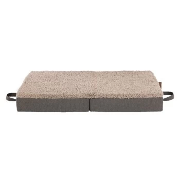 Die Liegefläche besteht aus einem modernen 2-Schichtensystem: 1/3 viskoelastischer Schaum und 2/3 Komfortschaum. Der viskoelastische Schaum passt sich perfekt der Beschaffenheit des Hundekörpers an. Durch den Komfortschaum bleibt das Kissen formstabil und isoliert optimal gegen Bodenkälte. Verlässt dein Hund das Faltkissen, geht der Memory-Schaumstoff immer wieder in seine Ausgangsposition zurück.