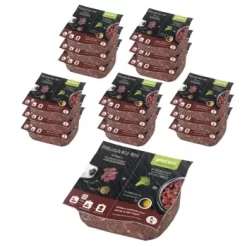Mit Wildfleisch erfolgreich Allergien bekämpfen: Das Hypoallergen-Wild-Menü frisch und fertig ist leicht verdaulich und optimal geeignet für Allergiker-Hunde mit sensiblen Mägen. Das tief dunkelrote Fleisch ist ein Gaumenschmaus, den viele Hunde sehr zu schätzen wissen. Es hat einen geringen Fettgehalt und weist darüber hinaus viele Spurenelemente, Vitamine und Mineralien auf. Dem Premiumfutter ist Brokkoli beigemengt, der bei der Krebsvorsorge hilft. Das in ihm enthaltene Sulforaphan regt die Produktion von krebshemmenden und radikalbekämpfenden Enzymen an. Auch Hunde mit Gelenkbeschwerden profitieren von Sulforaphan: Es hemmt jene Enzyme, die an der Entstehung von Arthritis beteiligt sind. Das BARF-Menü ist getreidefrei und eignet sich für Ausschluss-Diäten.
