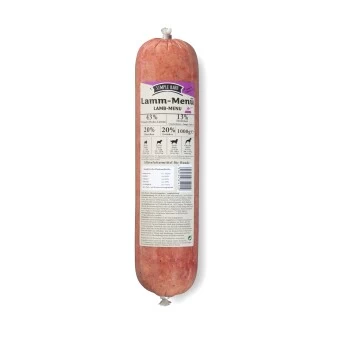Das perfekt abgestimmte SIMPLE BARF Lamm Komplett-Menü kombiniert frisches Lammfleisch, Hühnerfleisch mit weich gekochten Karotten, Kartoffeln, Erbsen und hochwertigem Futteröl. Dank unseres perfekt abgestimmten BARF-Hundefutters entfallen aufwendige Futterpläne und lange Zubereitungszeiten. Einfach frisch und gesund füttern mit SIMPLE BARF.Mit unserem vollwertigen SIMPLE BARF-Hundefutter gelingt die Frischfütterung von Hunden spielend leicht – einfach das vollwertige Komplettmenü auftauen lassen und fertig ist die 5*-Hundemahlzeit! Die SIMPLE BARF Menüs enthalten keine Lockstoffe, Konservierungsmittel sowie Zucker und sind vielmehr glutenfrei – für eine gesunde, frische und artgerechte Ernährung von Hunden!