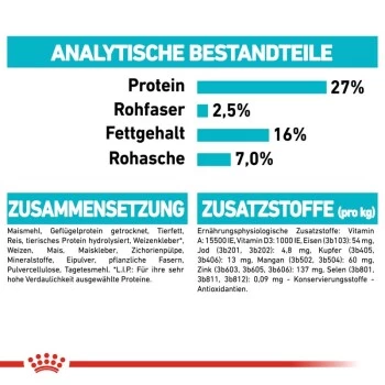 Alle Royal Canin Nahrungen sind Alleinnahrungen. Das bedeutet, sie enthalten alle wichtigen Nährstoffe wie hochwertige Proteine, Fette, Ballaststoffe, Vitamine und Mineralien, die Ihr Hund für sein lebenslanges Wohlbefinden benötigt.