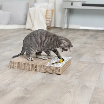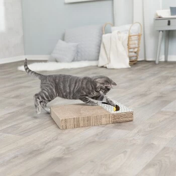Die Trixie Kratzpappe mit Spielzeug kann einfach auf den Boden gelegt werden und Ihre Katze kann ausgiebig kratzen. Zwei im Inneren befestigte Bälle animieren zusätzlich zum Spielen.